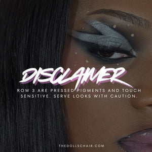 Disclaimer: Row #3 are pressed pigments sensitive to touch, pick up gently with fingertip or flat eyeshadow brush.